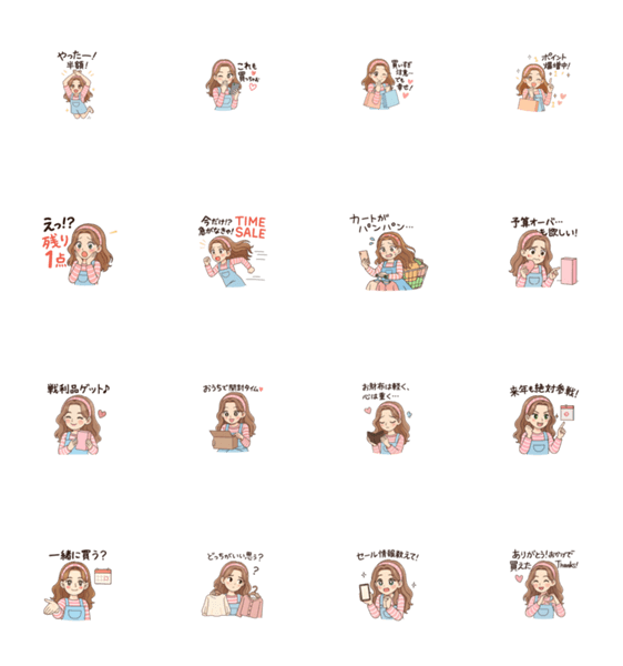 ブラックフライデー楽しむ可愛い女の子のスタンプ! セールやお得情報をシェアしたり、ショッピングの興奮を友達と共有するのにぴったり。