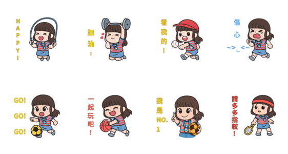| スタンプ説明 | The version of sporty style girl animated stickers. |