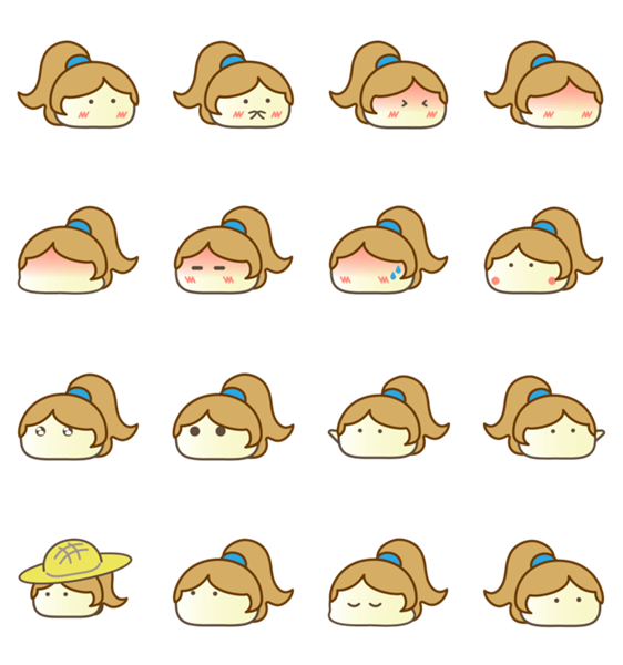 おまんじゅうをモチーフにしたスタンプです。 こちらは4作目で、ポニーテールをかぶってみました。 恥ずかしがり屋さんバージョンです。