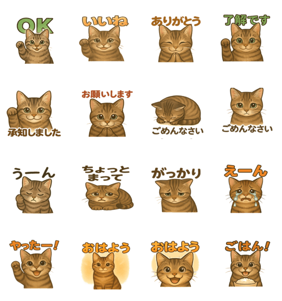 おっとり優しい茶トラ猫・しまじろうクンの毎日をぎゅっと詰め込んだスタンプです。 「おはよう」から「ごはん!」まで、まるっと使えるゆるかわ表情でトークを癒します