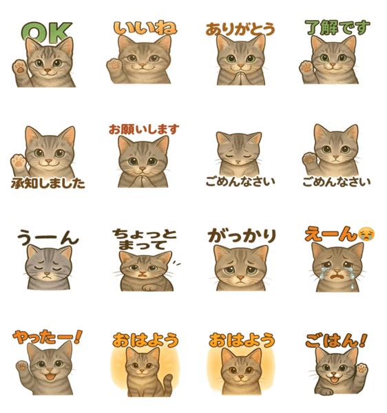 ちょっぴりクールで甘えん坊なグレー猫・リンちゃんの可愛いリアクションを集めたスタンプ。 シンプルで使いやすく、トークがふんわり楽しくなること間違いなし