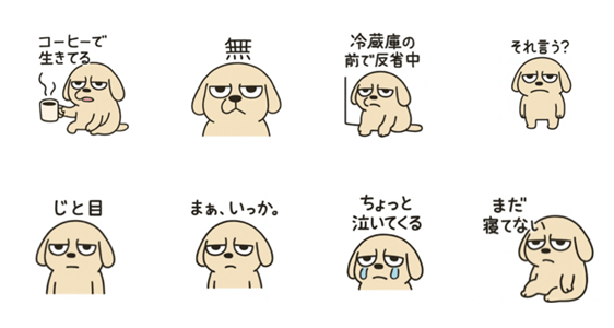 やる気ゼロ。でも人生が愛おしい。 ゆるくてシュールなタレ目犬が、 あなたの毎日を静かに見守ります