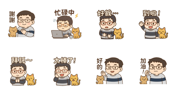 A simple and cute chibi set on a clean white background, featuring a friendly ginger cat in every sticker. Includes 8 everyday essentials.