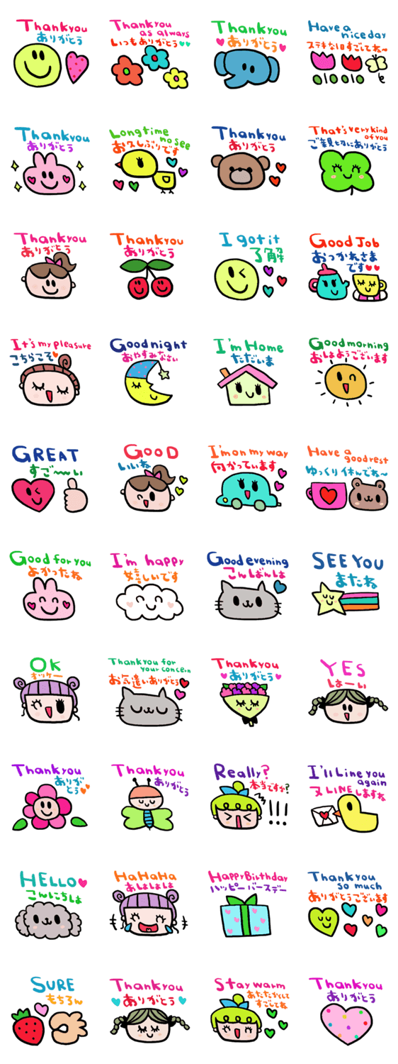 シンプルな日常会話スタンプです。お気遣いスタンプ 日本語英語スタンプ