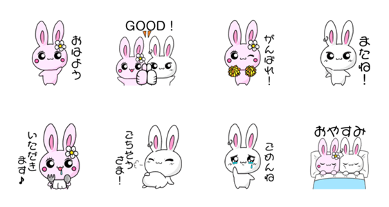 かわいいうさぎ夫婦のスタンプです!ピンクが女の子の「ちぇりぃ」で白が男の子の「くっきぃ」です!