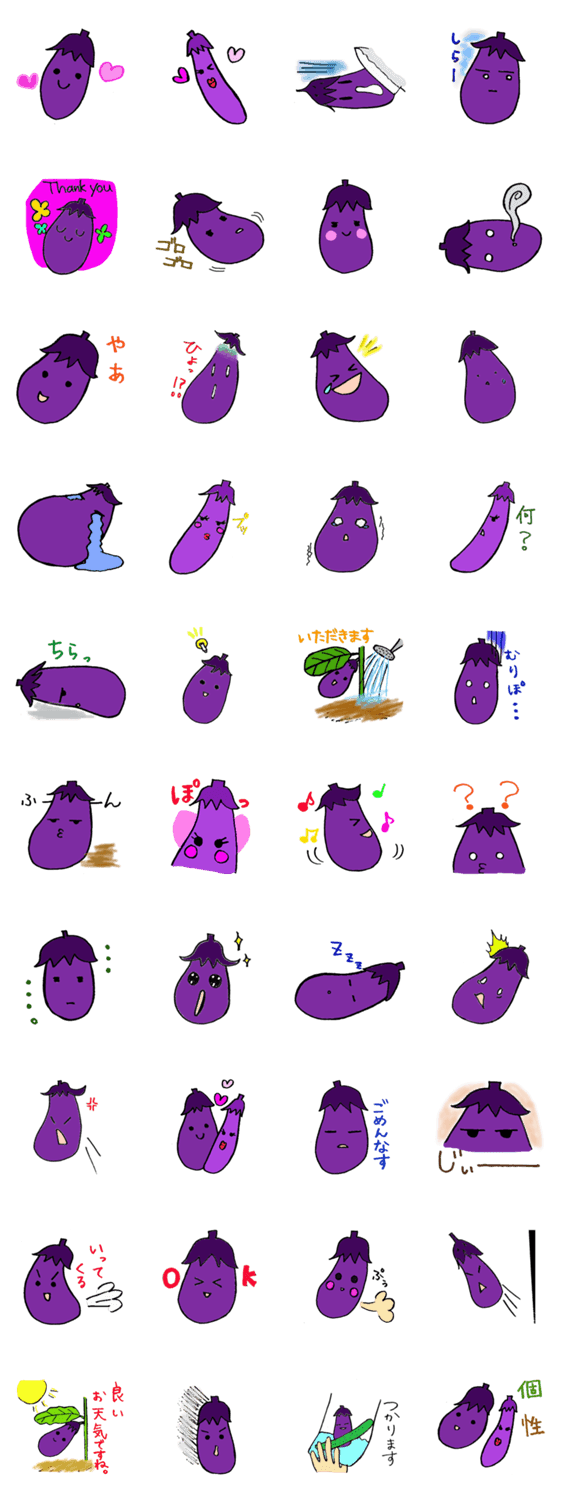 ナスのカップル、おっとりなすおとツンデレなすこのスタンプです。