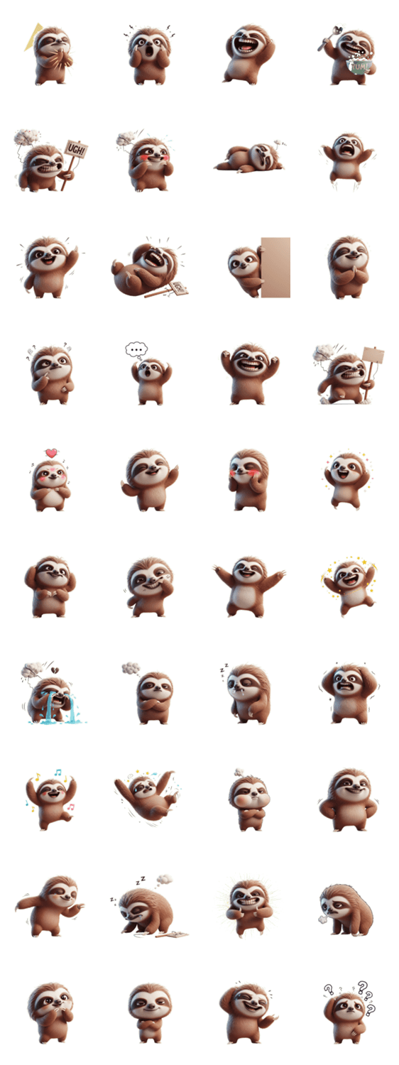 | スタンプ説明 | ナマケモノは休暇でも疲れている。かわいくてのんびりしたスロースが、休日のだるさを表現。LINEスタンプやリラックス会話に最適、 |