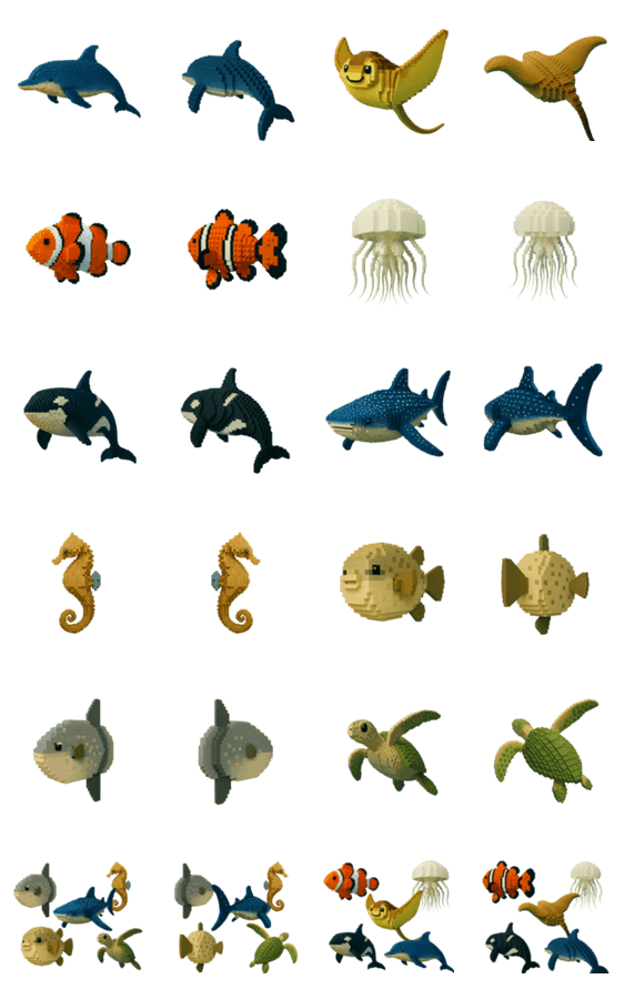 | スタンプ説明 | ブロック風の海の生き物たちが登場! かわいい仲間たちで毎日のトークを楽しく |