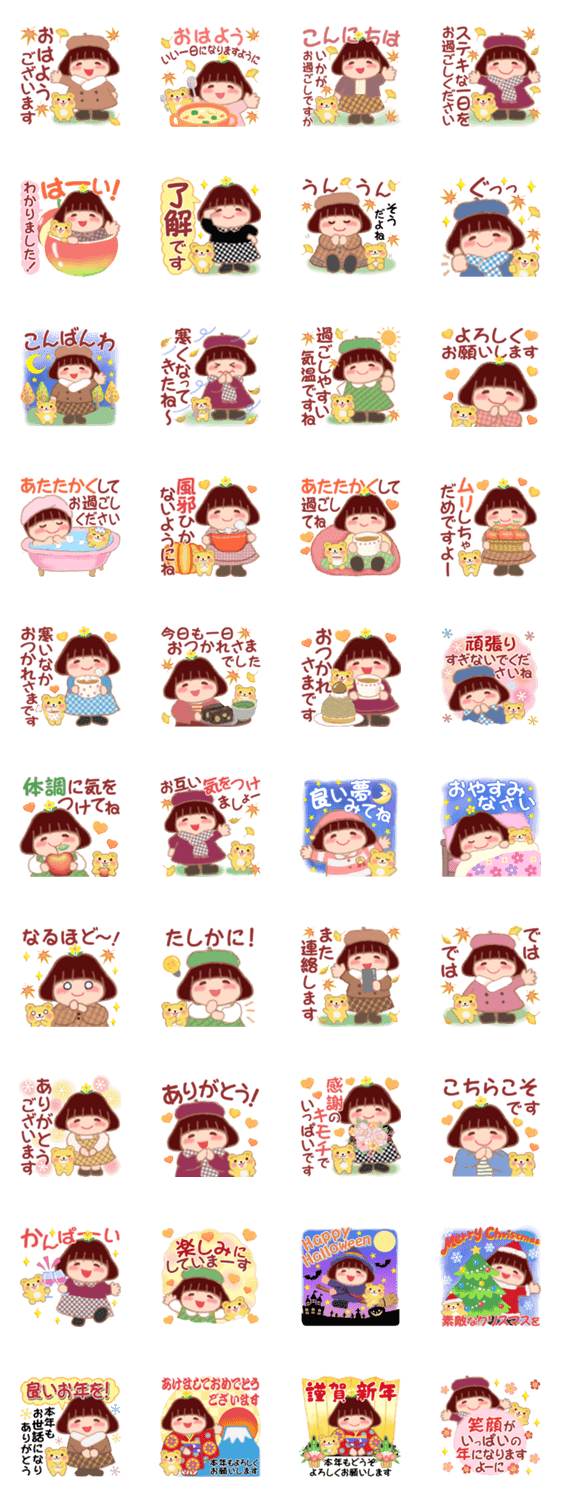 「でぶりん」の日常会話、クリスマス、ハロウィン、新年等、秋から冬に使えるスタンプです。