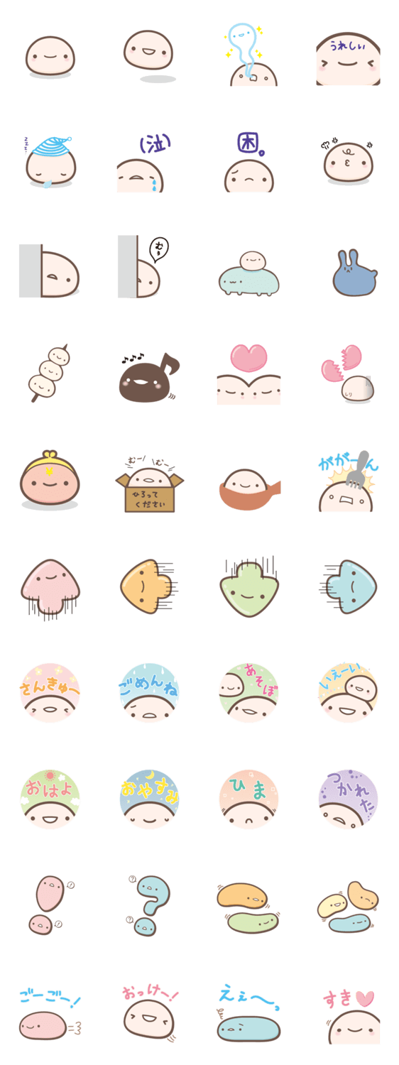 やわらかくてもちもち、いつも元気な「しらたまこ」のスタンプです(・-・)むぅ