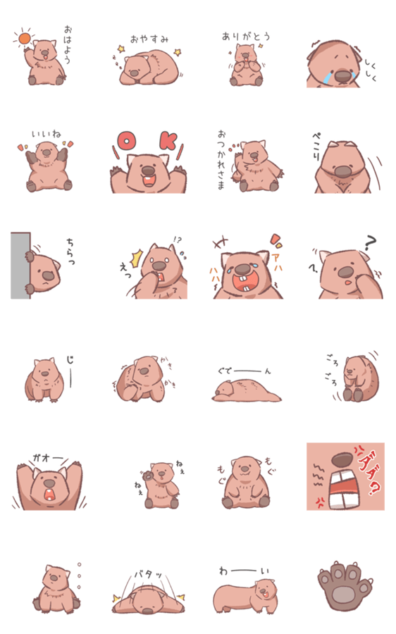 挨拶や日常に使えるずんぐりで可愛いウォンバットのスタンプです!たまにおふざけもします。