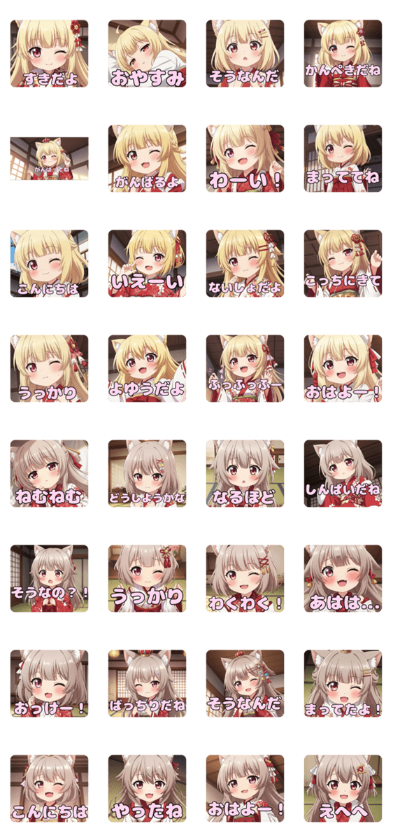 赤白の振袖スタンプ(はちみ&みなみ) -LINEスタンプマニア