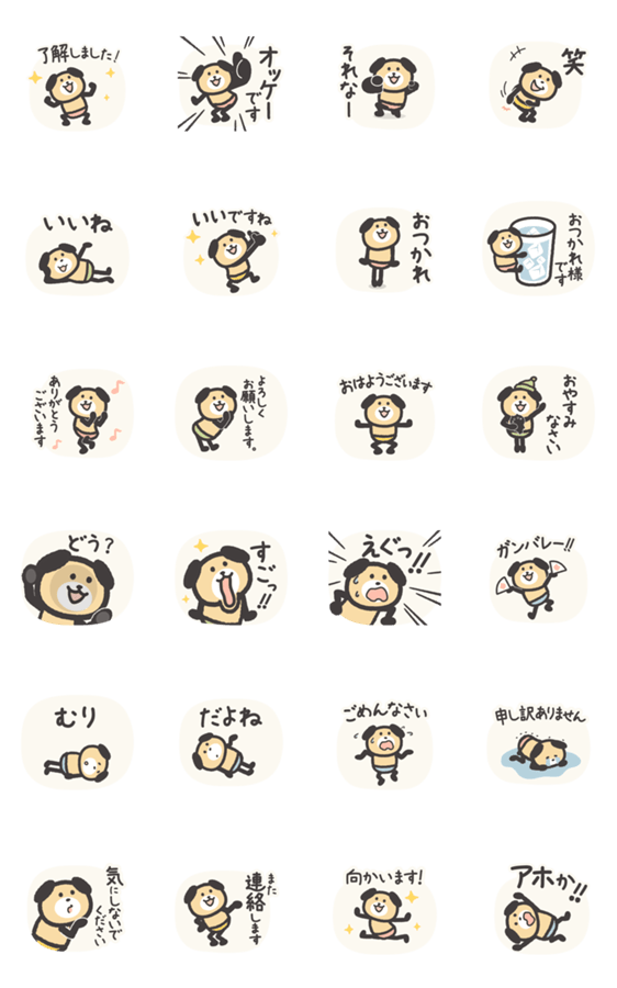 いつもはっちゃけ過ぎな「いぬ」が陽気に動いて伝えるスタンプ!