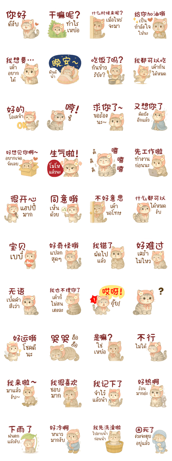 Miso the chubby cat is here to brighten your chats every day! Chinese-Thai version