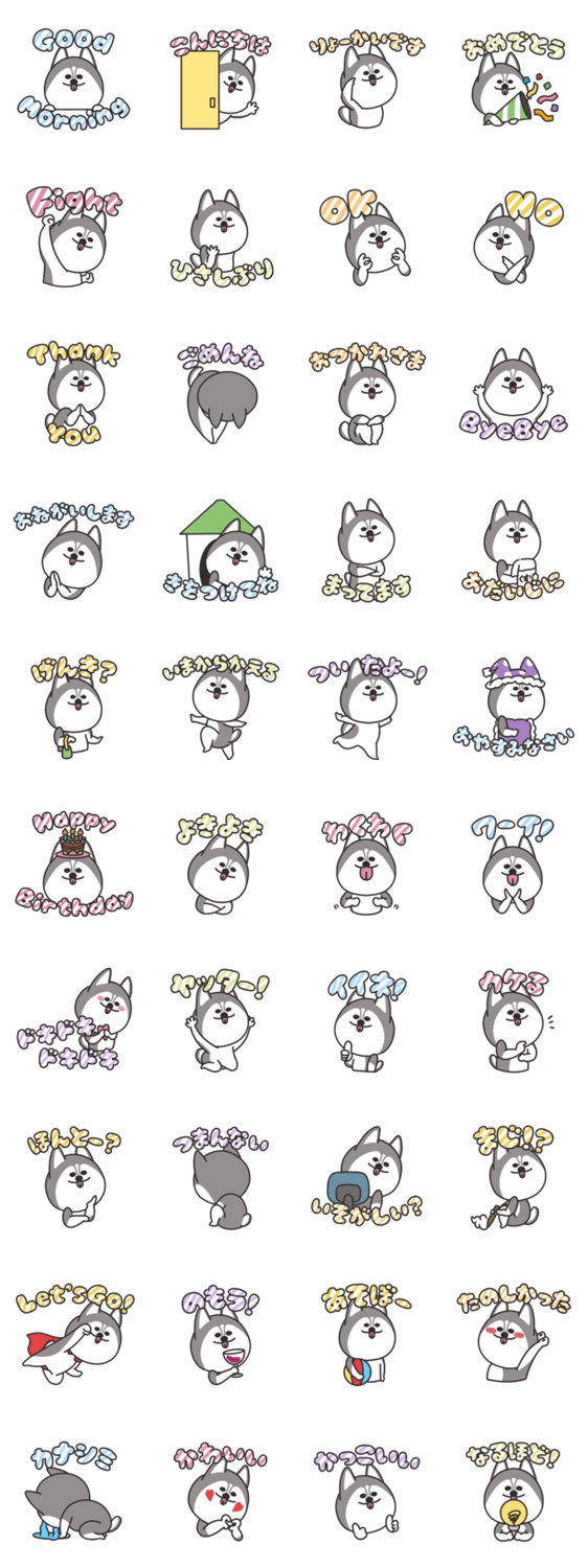 シベリアンハスキーの毎日使いやすいスタンプです!犬/わんちゃん/いぬ/普段使い/日常/ポップ