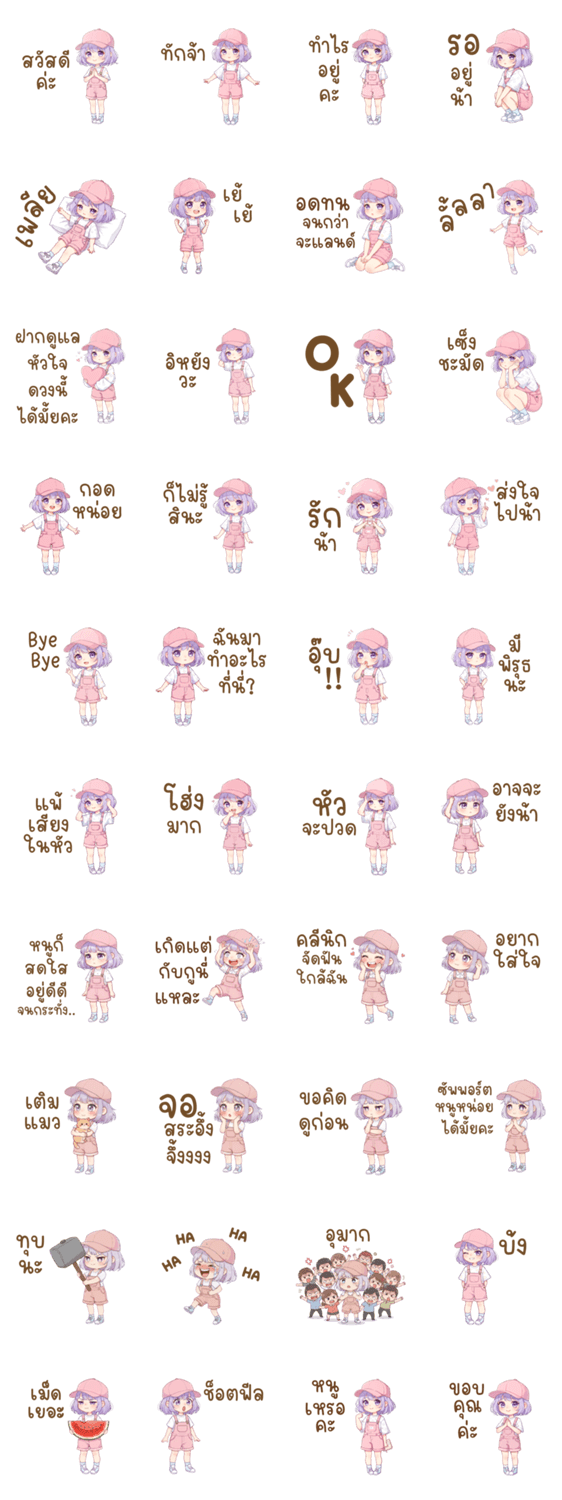 Popular word sticker a cute pastel set featuring trendy Thai phrases and every expression for chats.