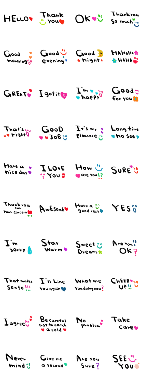シンプルな日常会話スタンプです。お気遣いスタンプ 英語スタンプ