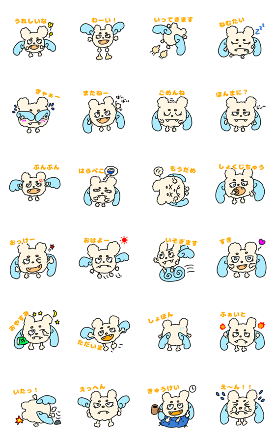 ジト目シリーズイラストから生まれた「もふもふ」のスタンプ24個入り