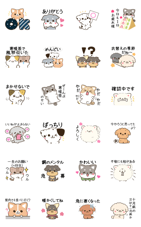 やる気が出ない時に使えるゆるかわ柴犬と三毛猫とキジトラ白猫のアニメーションスタンプ 黒柴 トイプードル ダルメシアン ポメラニアン ヨーキー コーギー シュナウザー