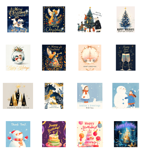 | スタンプ説明 | 誕生日・ハッピーバースデー・年末年始・サンタクロース・トナカイ・クリマスツリー・乾杯・花火・ありがとう・雪だるま・メリークリスマス・大人っぽい・おめでとう |