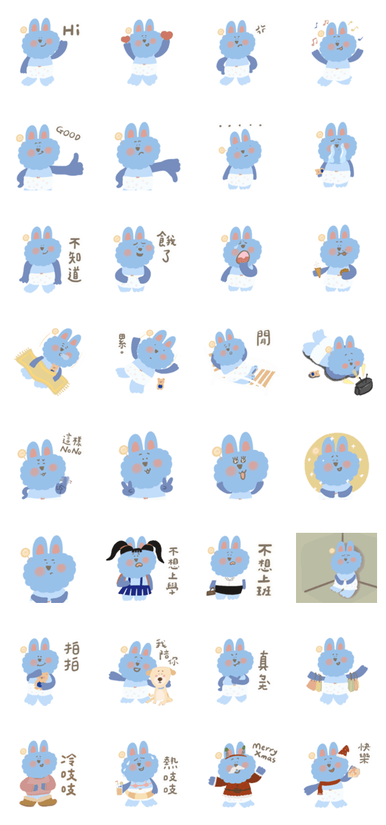 | スタンプ説明 | If you can sit, don't stand; if you can lie down, don't sit. Lazy Blue Bunny, the laziest on Planet Lazy, is here to add silly fun to your chats! |