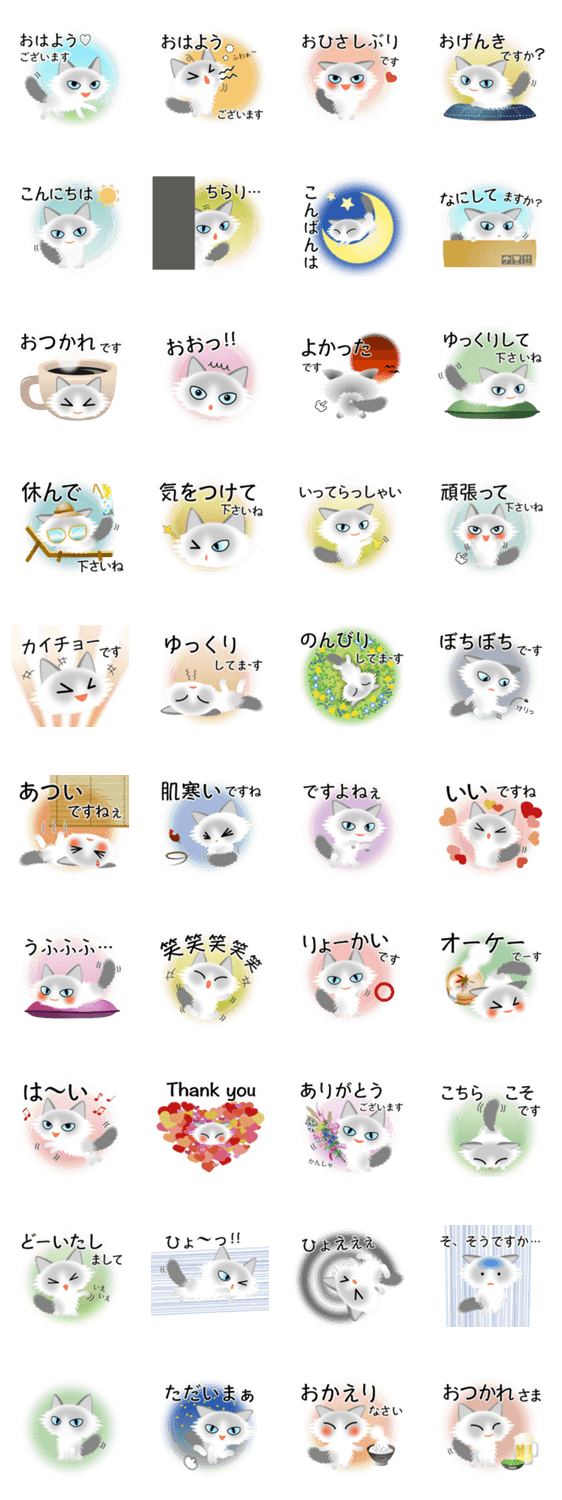 色々な猫20-4 長毛-白にグレー柄 -LINEスタンプマニア