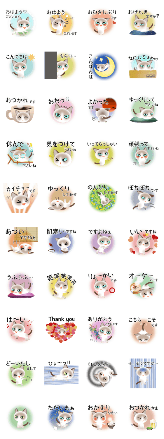 多種多様な柄の猫たち全80種。ラグドール。シャム。ノルウェージャンフォレストキャット。ペルシャ。バーマン。ラガマフィン。ヒマラヤン。サイベリアン。