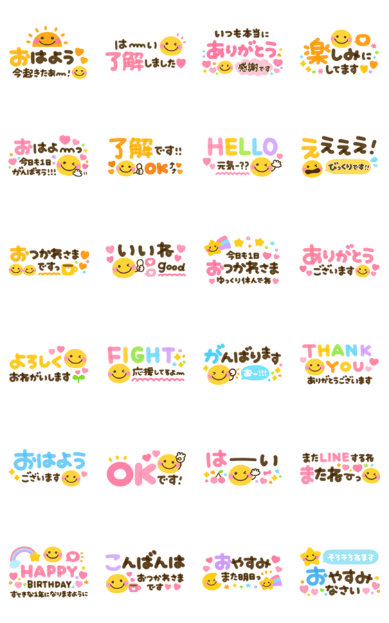 敬語やよく使う言葉お集めました。 大人カラフルな文字が可愛いスタンプです♡