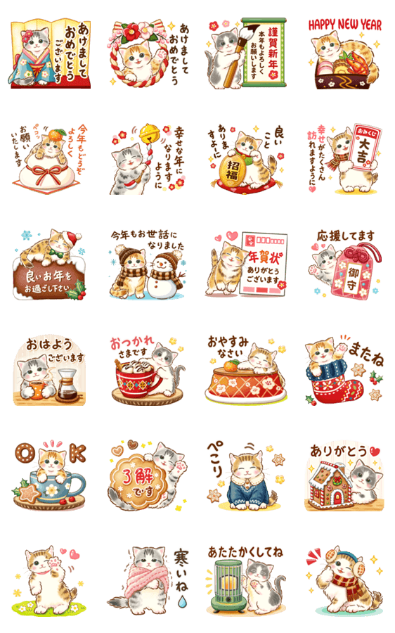 ちっちゃい猫のあけおめスタンプ(再販) -LINEスタンプマニア