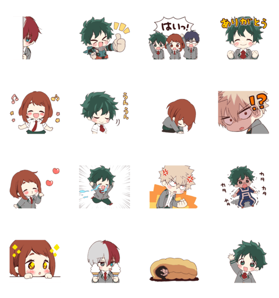 動くヒロアカスタンプを作ってみました!デクとお茶子が多いです!よかったら使ってみてください(*´ω`*) ※LINE Creators Collaboration 僕のヒーローアカデミア参加スタンプです。