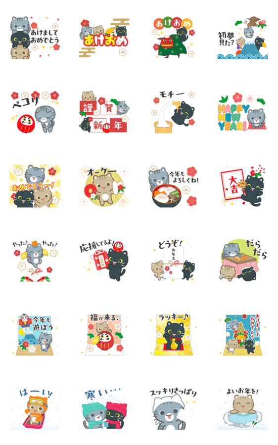 3びきのねこ♪動くあけおめスタンプ2(再販) -LINEスタンプマニア
