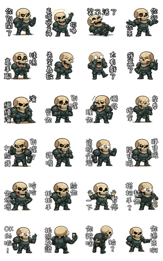 | スタンプ説明 | A skeleton knight likes to roughhouse. |