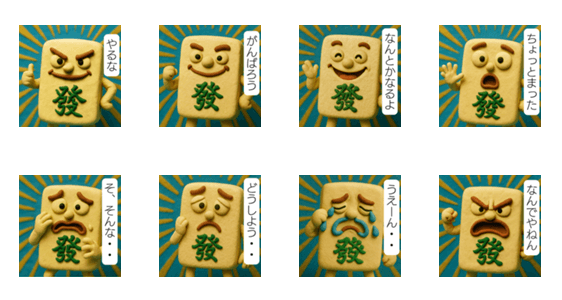 發をモチーフにしたキャラクター“ハツ”が、あなたの感情を表現!幸運と遊び心いっぱいの麻雀キャラスタンプです