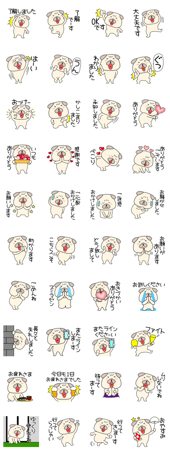 毎日使える可愛いパグ犬の敬語のスタンプです