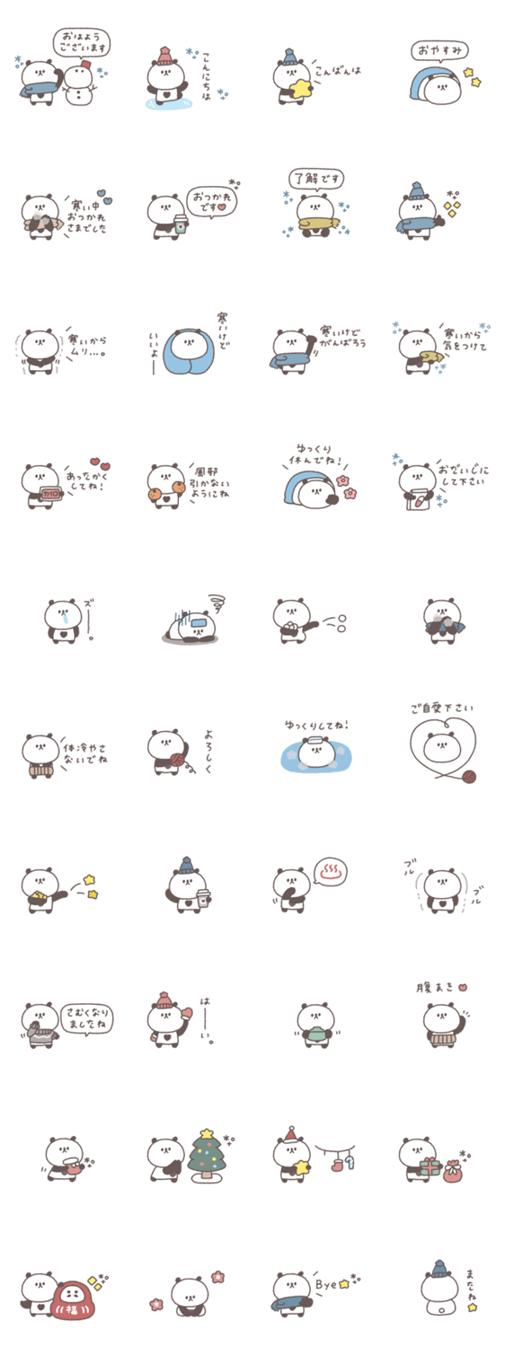 一つあると便利な小さくてかわいいぱんだのスタンプです。 パンダ/大人可愛い/シンプル/あいさつ/吹き出し/くすみカラー/冬/クリスマス/正月