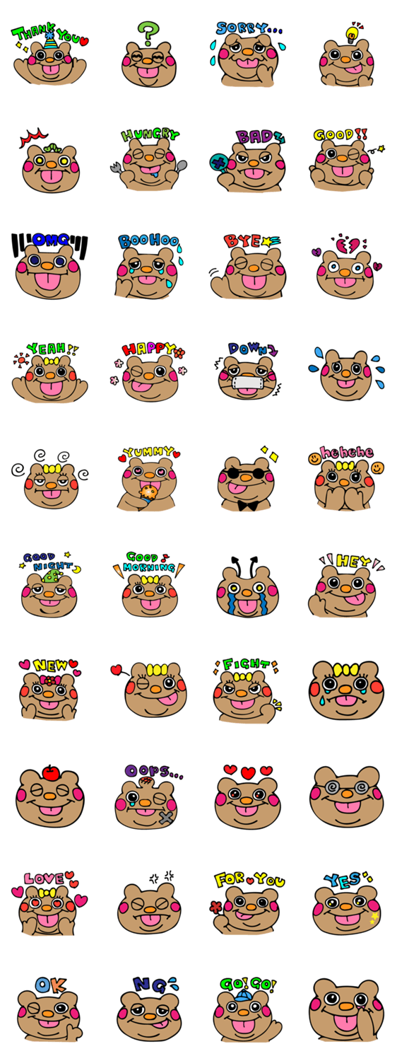 いつもべろを出しているクマです。二重あごでブサかわです。