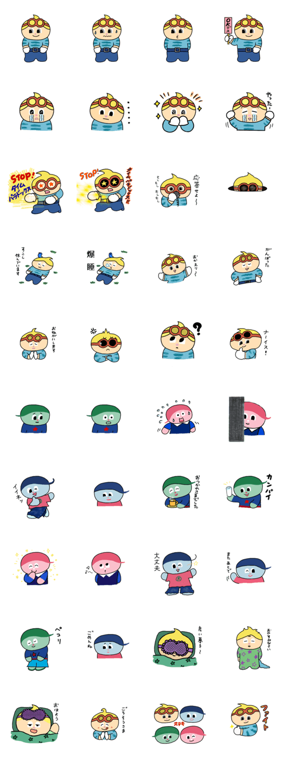システム個人第4回公演で誕生したキャラクター。 未来からやってきた楽しい仲間たちです。 ゴーグルを付けている子がタイムパトロール協会の 「Timeparadoxふせぐ君」です