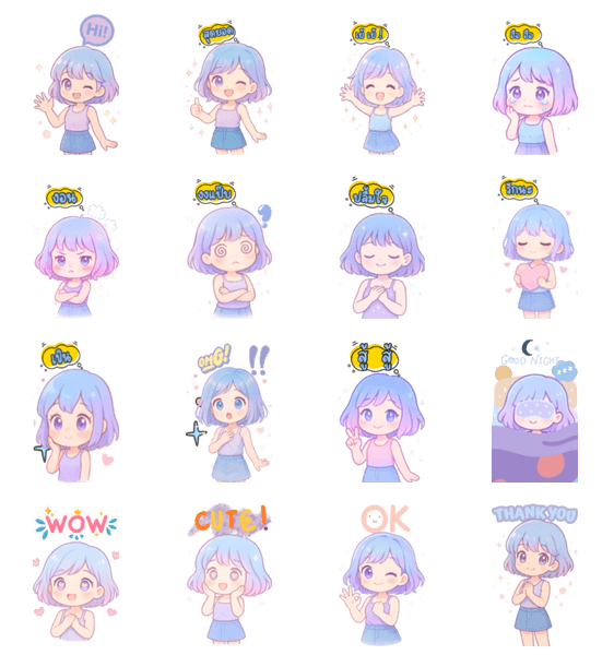 | スタンプ説明 | The Pearly Dreamy Emotions sticker set features the adorable pastel moods of Pearly a dreamy girl with gentle expressions These stickers will show up extra large in chats. |