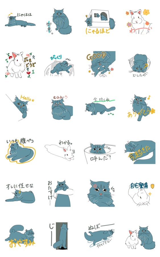 モヤジニ(うさぎの兄とサイベリアンの弟) -LINEスタンプマニア