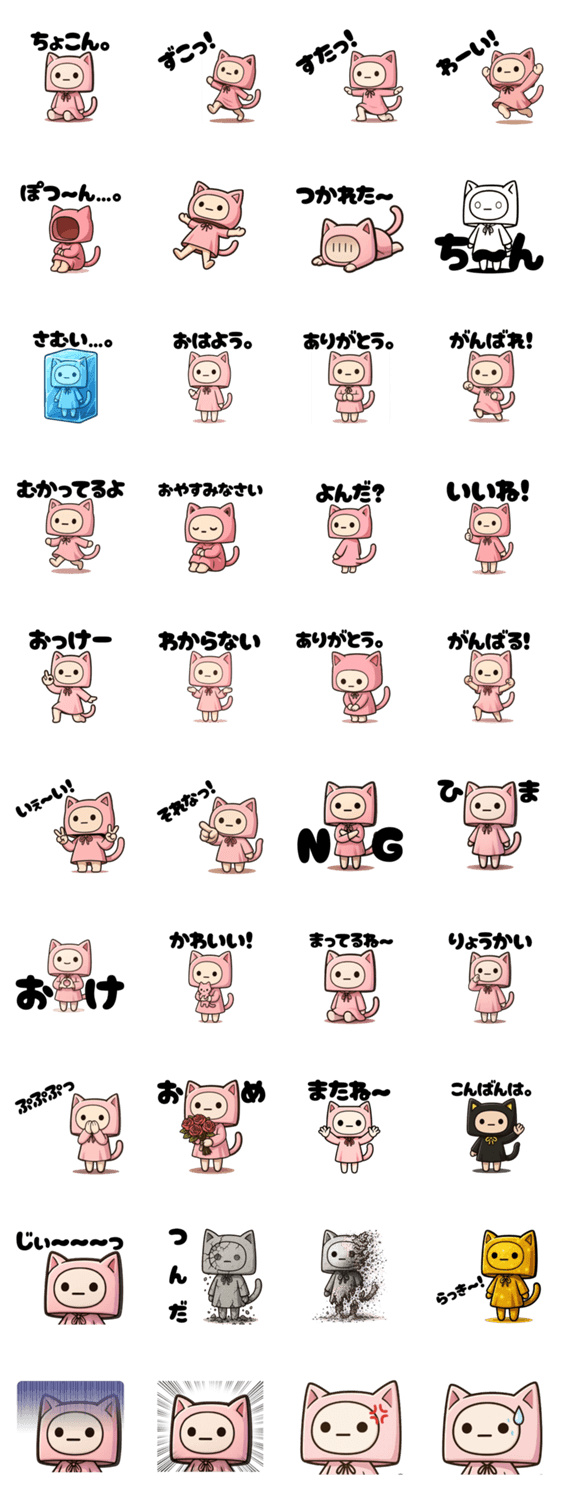 スタンプ説明 猫の被り物を被ったワンピースのゆみちゃん❤︎