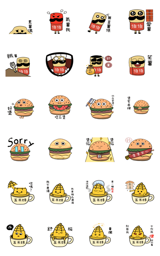 | スタンプ説明 | Fries,Hamburger,Corn chowder |