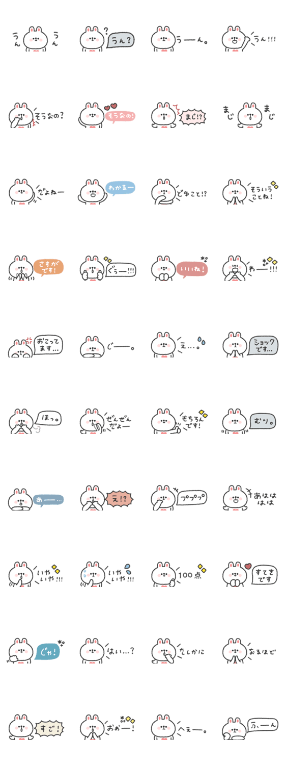 1つあると便利なうさぎのスタンプです。シンプル/かわいい/大人/可愛い/毎日使える/あいさつ/うさぎ/吹き出し/省スペース/あいづち