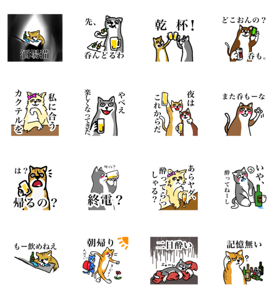 酒に関するコミュニケーションスタンプです。ちゃんと酔っ払ってから作りました
