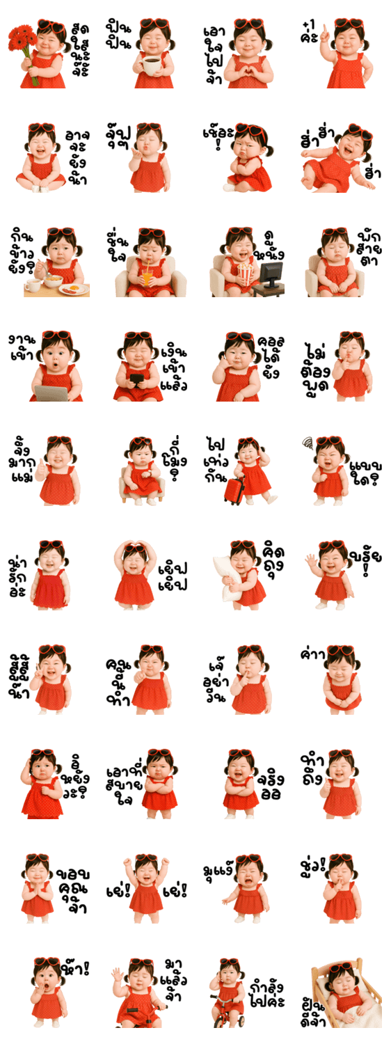 Cute chubby girl in bright red dress -LINEスタンプマニア