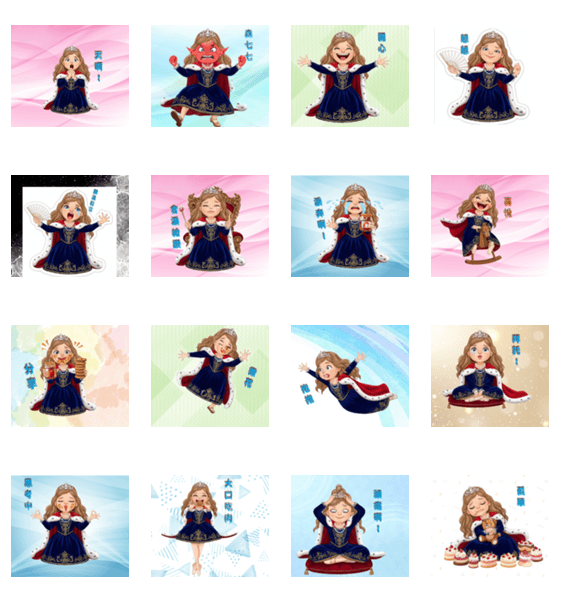 Exaggerated, cute, mischievous, vivid, royal little girl stickers