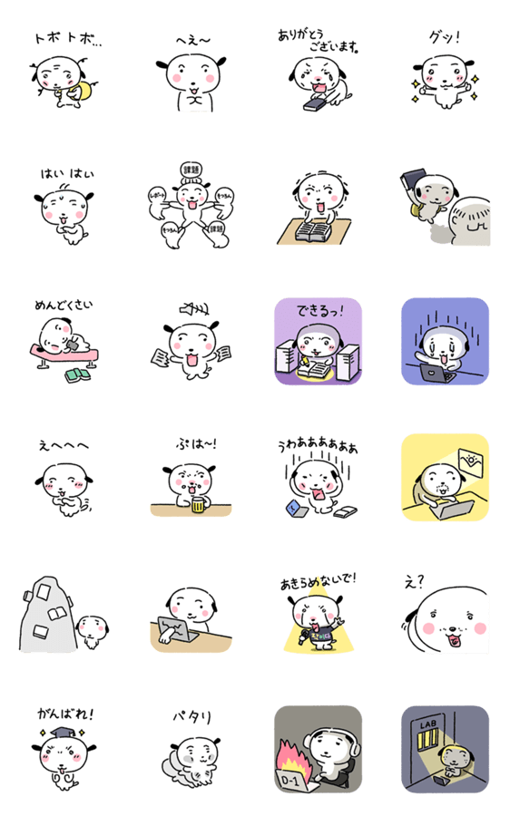 大学生・大学院生のためのスタンプです。 20代ならではのちょっとB級なユーモアと、ポジティブなメッセージで会話を楽しめます。
