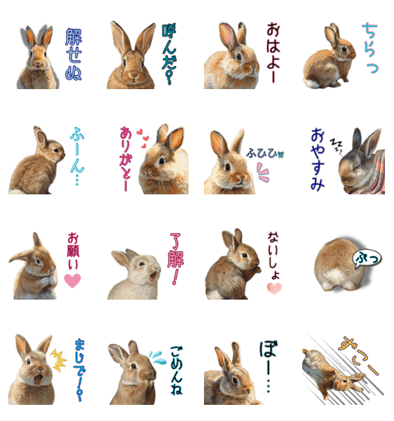 油絵タッチで描かれた、やさしい表情のうさぎたちのスタンプです。 癒やし系からちょっとお茶目な表情まで、毎日の会話にふんわり彩りを添えます。