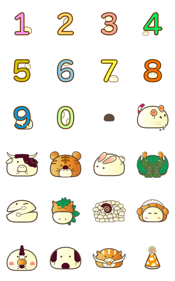 日本のおやつ”和菓子”をモチーフにした、ゆるいキャラクターです。 6作目は、干支と数字のスタンプを作りました。