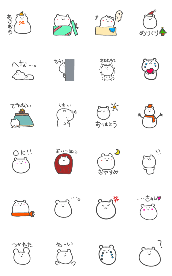 ころんとかわいい「日常くまさん」が冬支度をしました。普段遣いはもちろん、冬ならではのシーンも盛り込みました!送るたびに笑顔になれるスタンプです。