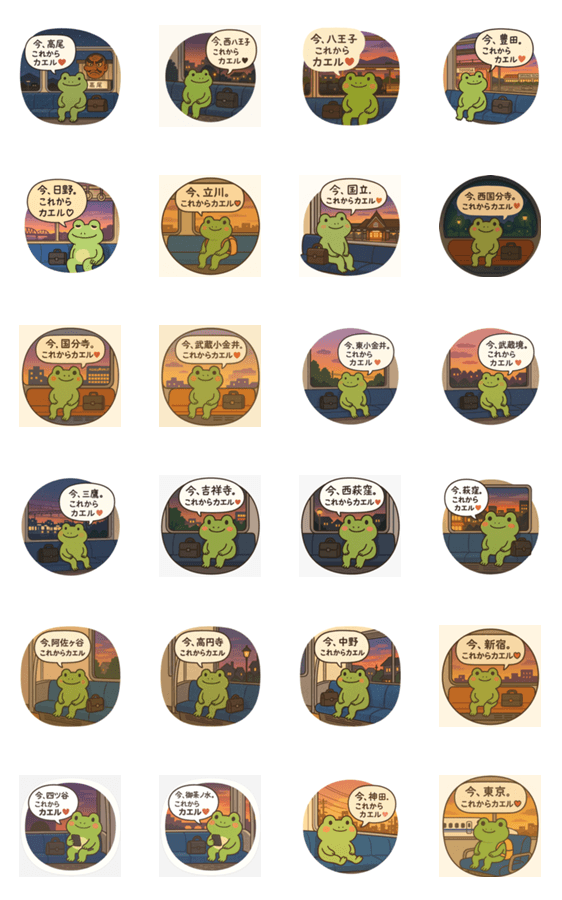 これからカエル 通勤カエルの夕暮れ旅 -LINEスタンプマニア